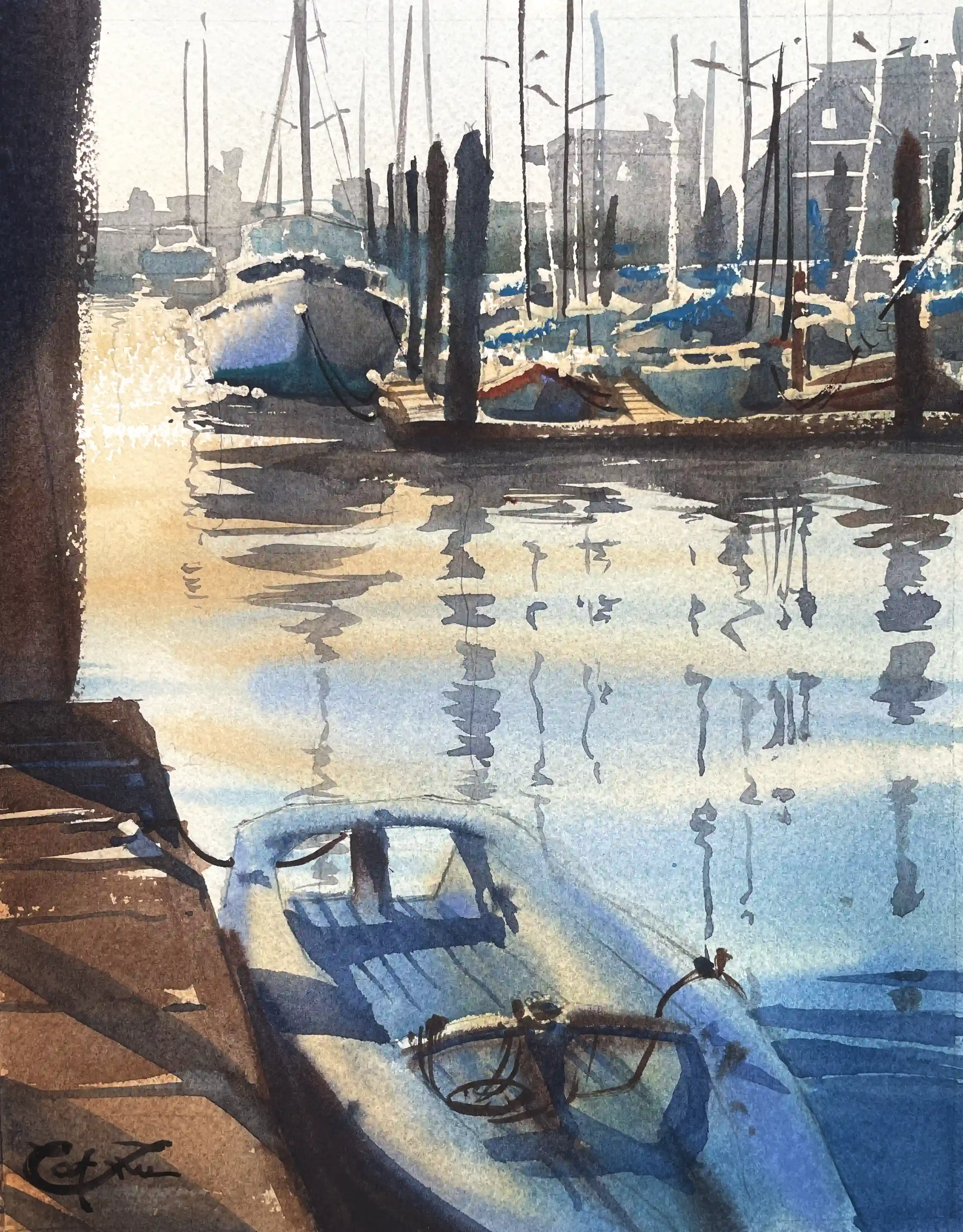 Barbara Tapp was the volunteer assigned to help me to hang my wall… talk about humbling!! I’m floored by her commitment to Alameda plein air, as well as for the practical advice she offered about framing watercolor paintings.