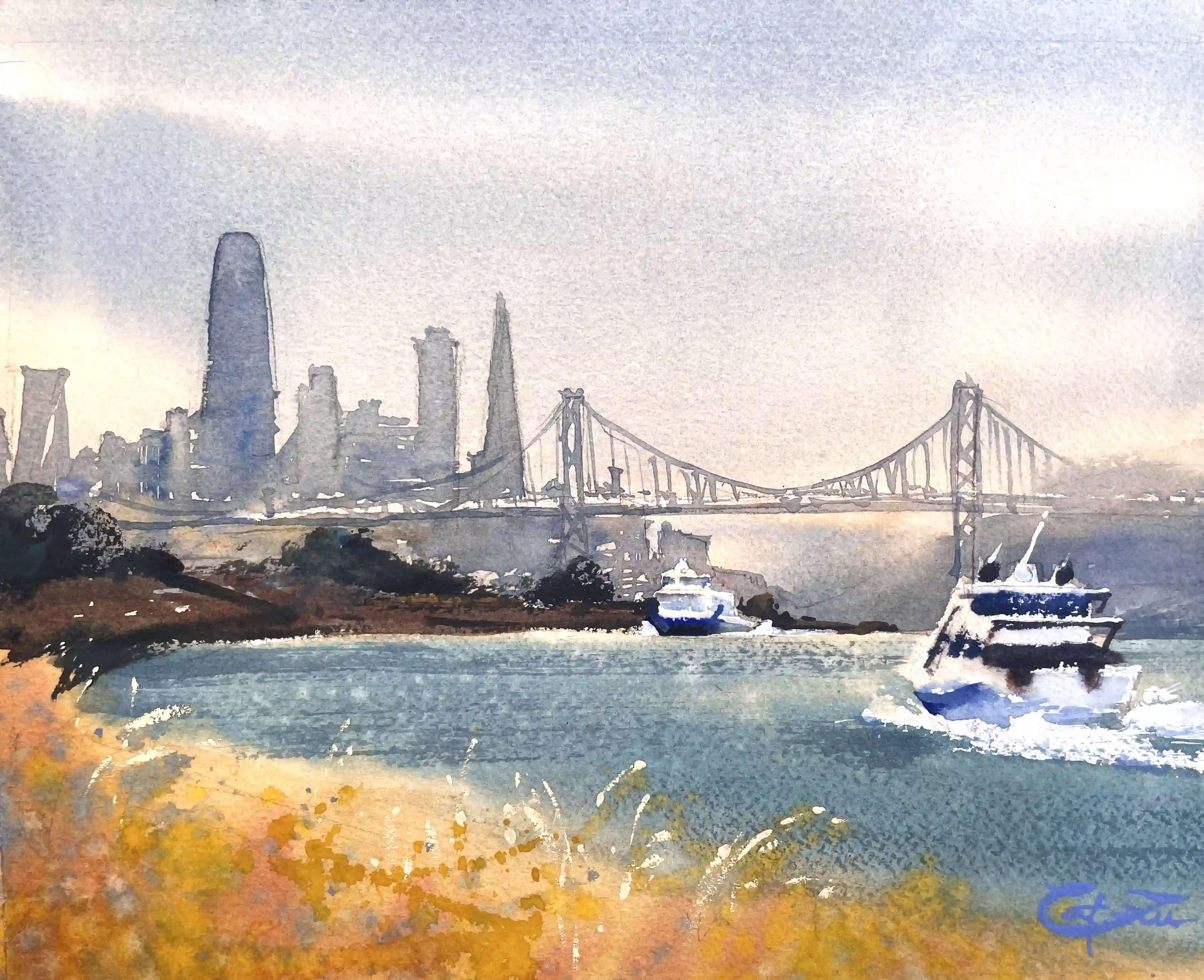 My painting “Smoke Over Oakland Harbor” was voted People’s Choice by the public.
