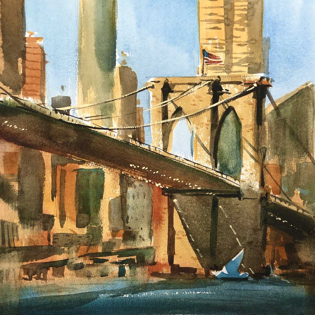Painted in Dumbo as morning light struck the Brooklyn Bridge and Manhattan.