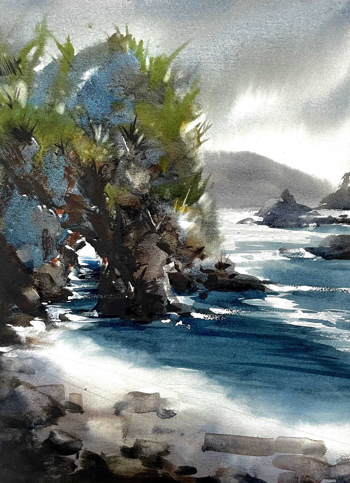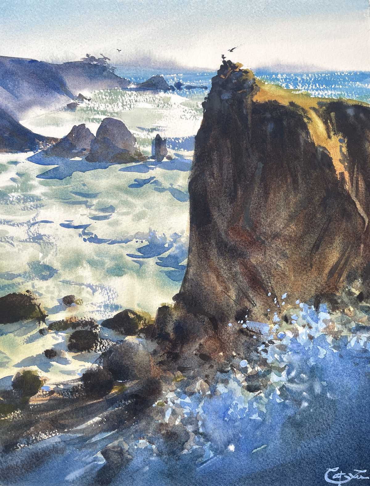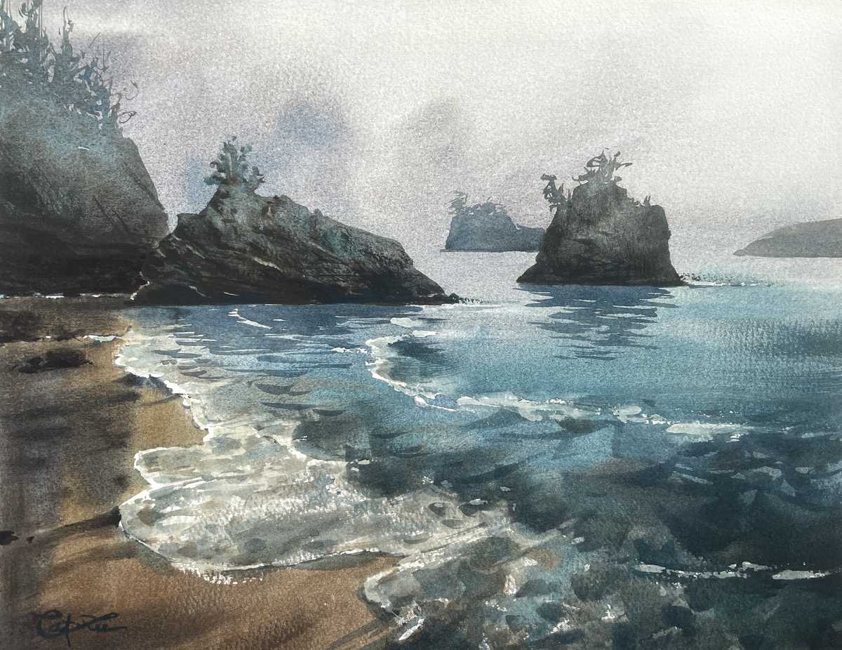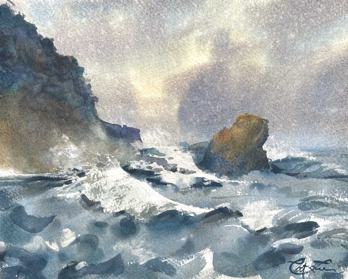 Painted on the beach of Harbor House Inn in Elk CA, before celebrating my birthday with a meal inside.